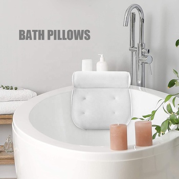 Almohada de Spa para el hogar, soporte para cabeza, hombros, cuello, bañera de hidromasaje, 6 potentes ventosas, 4D, malla de aire